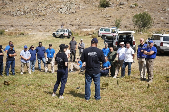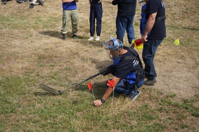 As suggested by the EU Monitoring Mission in Armenia, on 11 September, 2025, CHDE specialists conducted an imitation training on "Safe behavior while appearing in a minefield” in the city of Martuni, Gegharkunik region of the Republic of Armenia. In addition to safety rules, the main types of mines and explosive remnants of war identified in Armenia, ways to differentiate them and other details were presented. The patrols showed great interest in the topic.